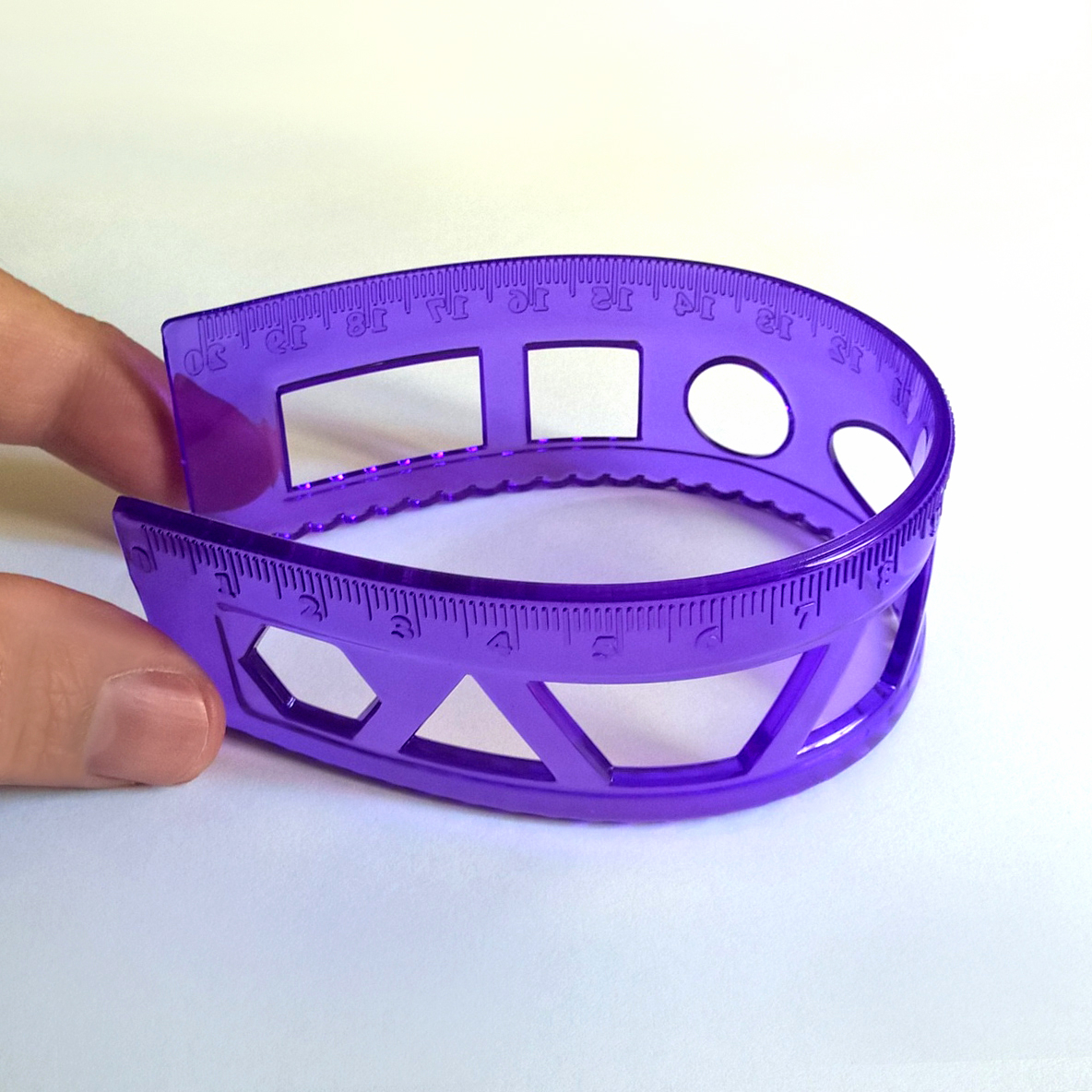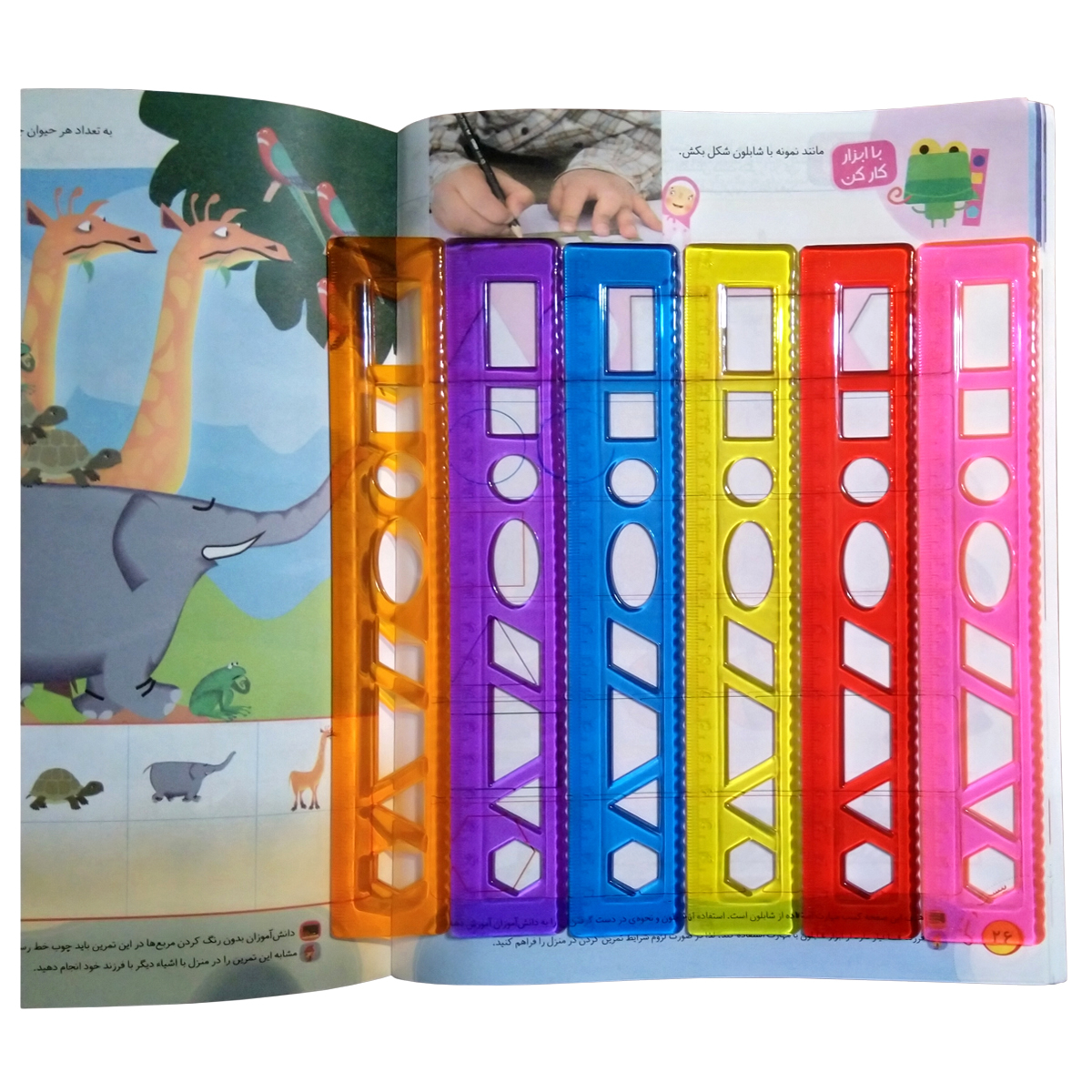 - 6 عدد خط کش شابلون دار در 6 رنگ - یک طرف هر خط کش مدرج و طرف مقابل موجی شکل - وزن هر خط کش 17 گرم (وزن 6 خط کش 102 گرم) - ضخامت هر خط کش 2.5 میلیمتر - جنس خط کش ها از پلاستیک ژله ای و شفاف