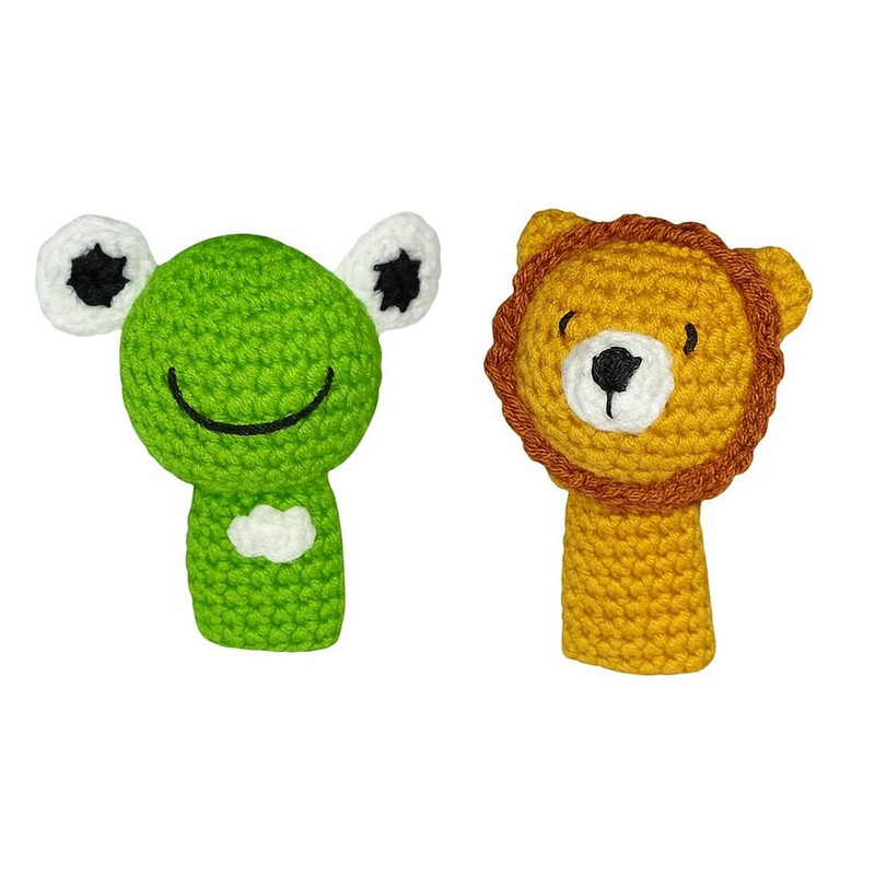 عروسک بافتنی طرح انگشتی مدل شیر و قورباغه مجموعه دو عددی